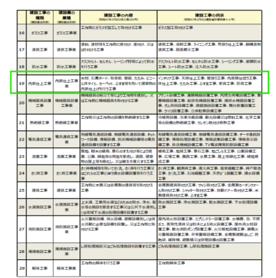 内装仕上工事業はその中の一つです(業種コード:190)。