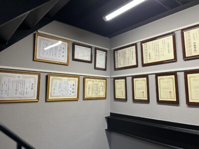 これまでの現場で表彰いただいた賞状は事務所の階段に掲示しております✨